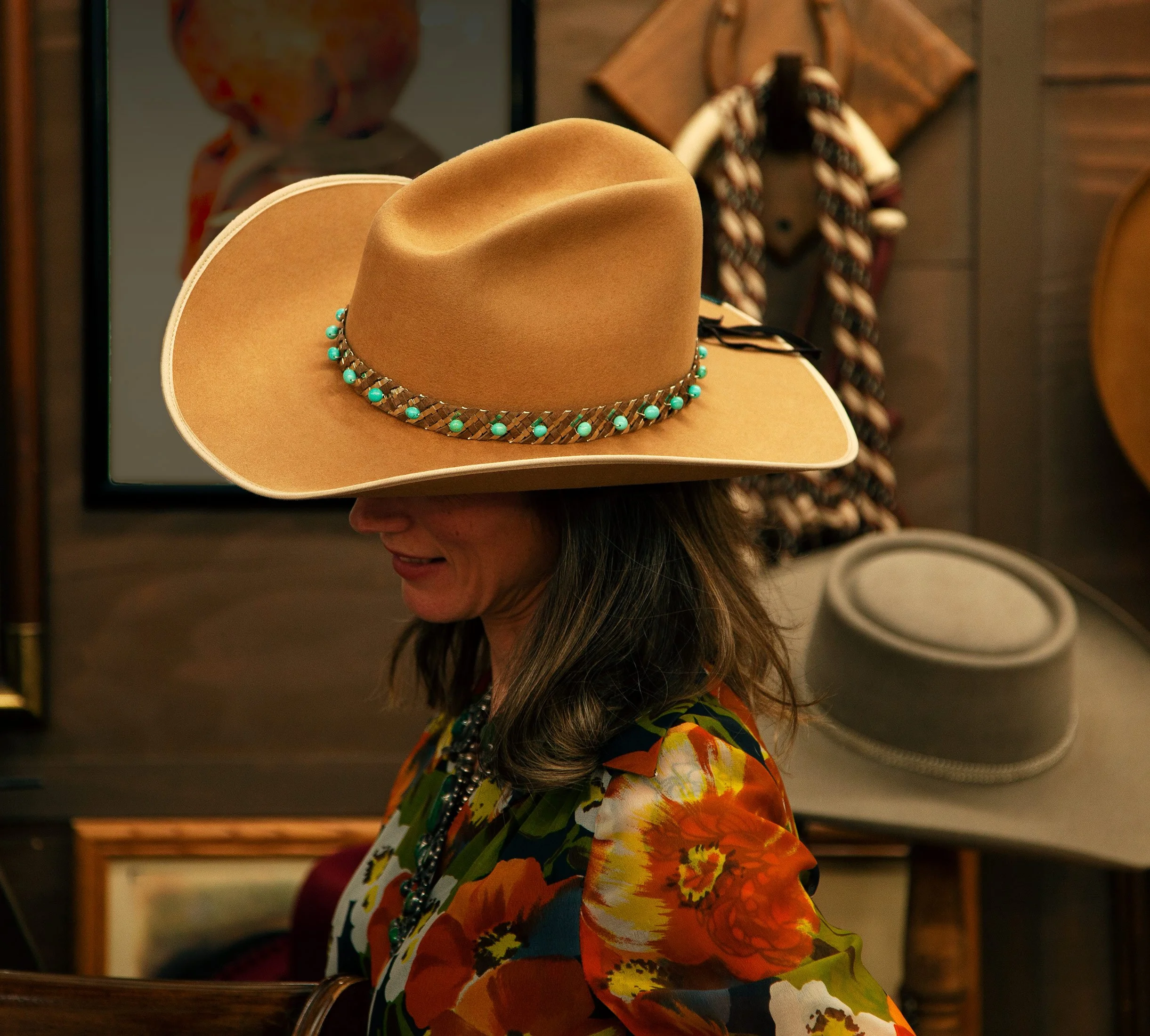 When Chrissy Glenn discovered D. James, she fell in love with his hats. Both artist were a perfect fit for a collaboration. Her unique hand woven hat bands were a natural addition to D. James unique hand made hats resulting in a great collaboration.
