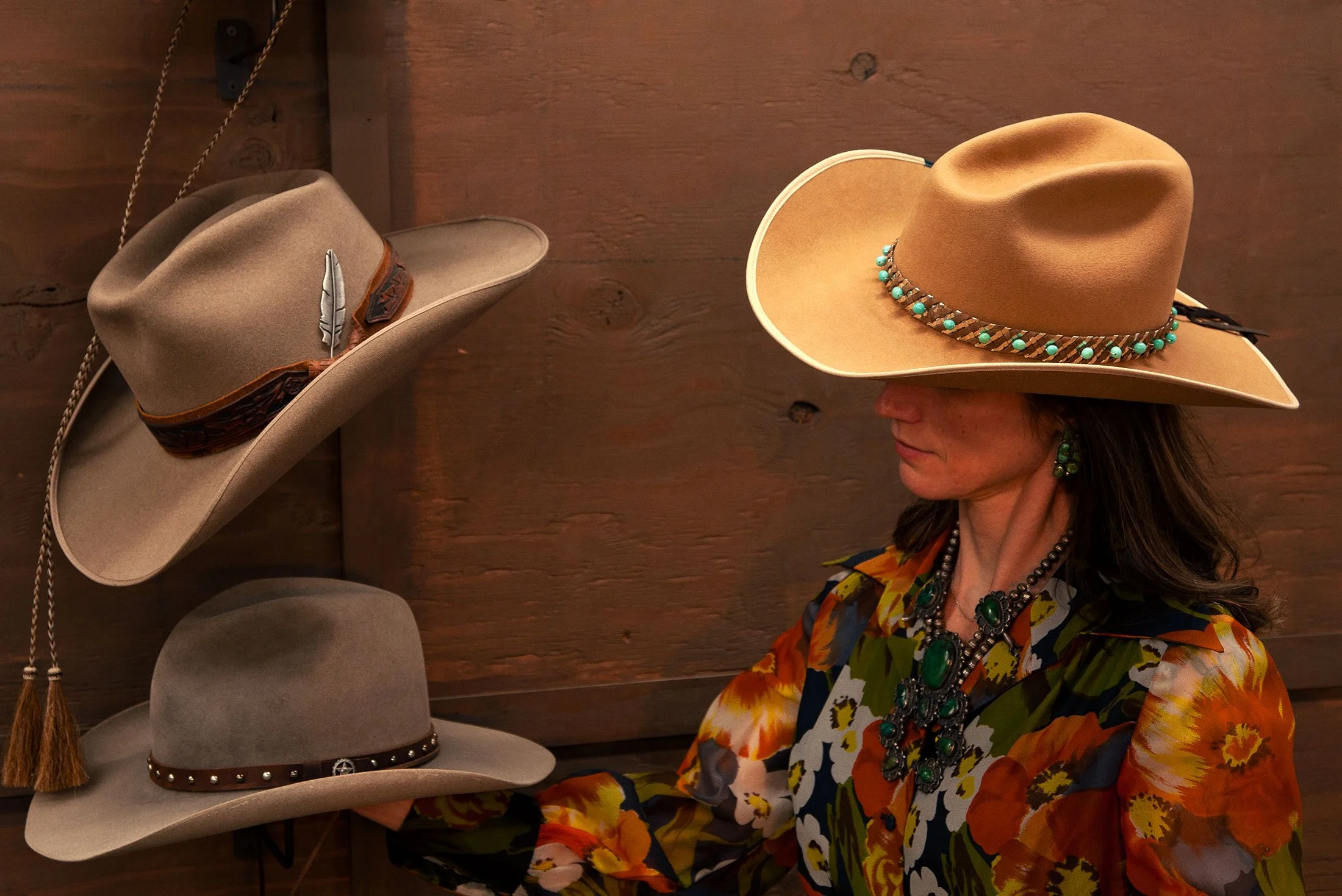 D. (Darren Hackey ) is a hat lover that became a hat collector that became a hat artist. So he started to create custom made hats and D. James was born in Montana. D. James hats are individually designed, and every element is hand made. The finest materials are hand sourced, incorporating vintage and modern materials. Each hat is a unique piece of art.